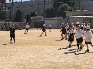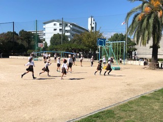 朝は寒い感じでしたが、だんだん温かくなってきました。運動場では秋の日差しを浴びて子どもたちが元気に遊んでいます。
