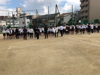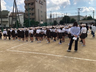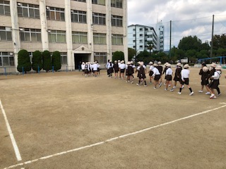 一度、運動場に避難した後、津波が来るとの想定で今度は校舎に避難します。