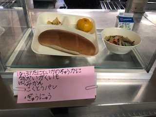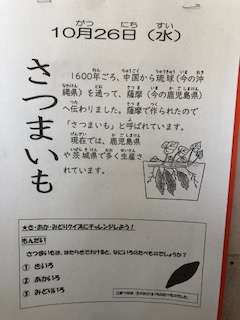 今日の給食には、みかんとさつまいもがでました。秋の風味が感じられます。