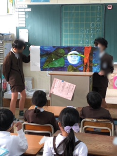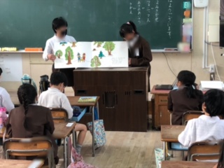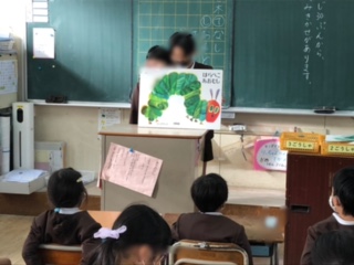 朝、教室では図書委員会の子どもたちが本の読み聞かせをしていました。