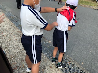 地図を見て、服部緑地公園を巡ってたてわり班でのゲームなどをしていきます。