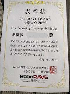 ロボットの制作やプログラミングで準優勝した表彰です。