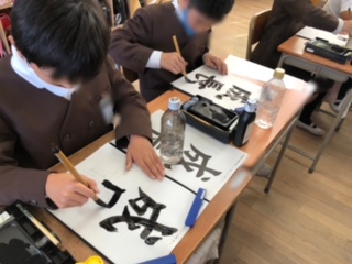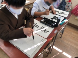 毛筆を使って書写(習字)をしています。