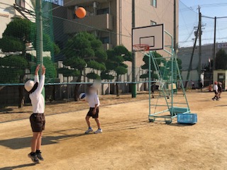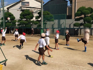 6年生といっしょに遊んでいる低学年の子どもたちもいます。(写真下)