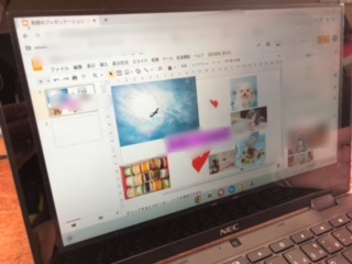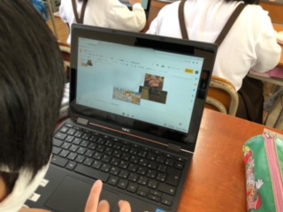 パソコンクラブでは、自分を紹介するカードを作っています。写真上のモザイク部分には児童が自分の名前を書いています。