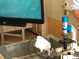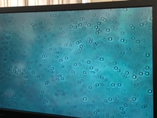 顕微鏡で牛乳とカルピスとを見ていきます。写真中は牛乳、写真下はカルピスです。