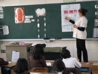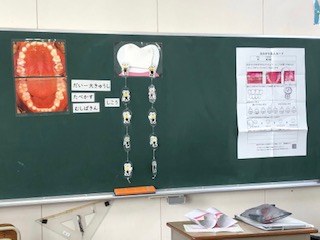 今日は歯科衛生士の方に来ていただき、2年生が歯磨き指導を受けました。