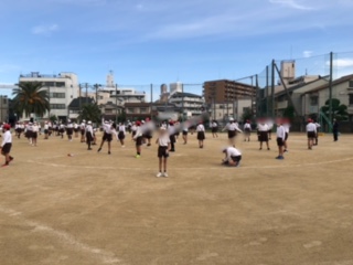 今週・なわとび週間では、休み時間に低学年、中学年、高学年ごとになわとびをしていきます。(写真は、5年生、6年生)
