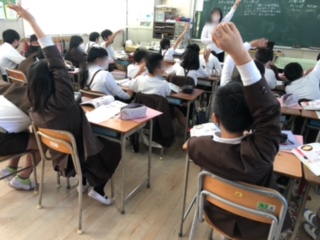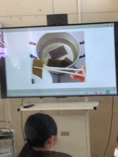 家庭科でご飯と味噌汁について学んでいます。味噌の使い方、玄米と白米の違い、調理の仕方などを学習しました。