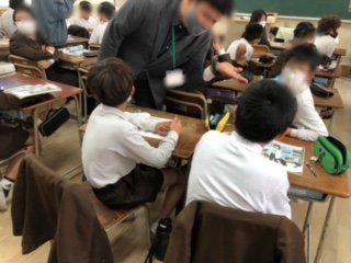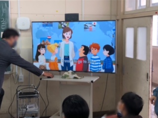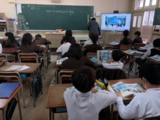 外国語(英語)の授業です。ネイティブスピーカーの方が入られています。