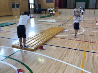 マット運動のポイントなどを担当教員から聞く場面もあります。