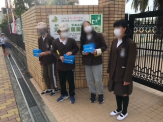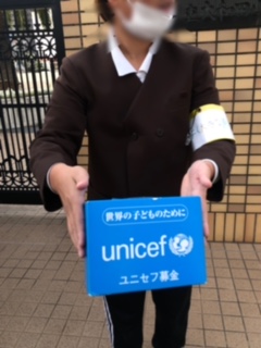 ユニセフ募金は、正門と通用門で行っています。写真下は通用門です。