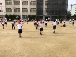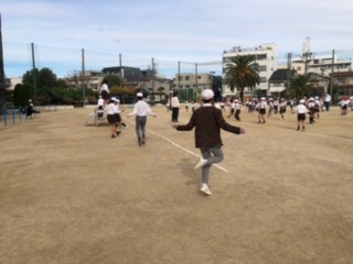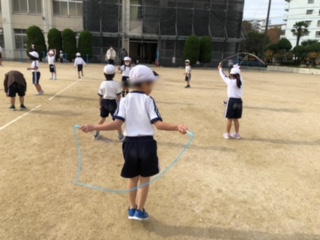 なわとび週間も今日が最後です。写真下は前で見本を見せている運動委員会の子どもたちです。