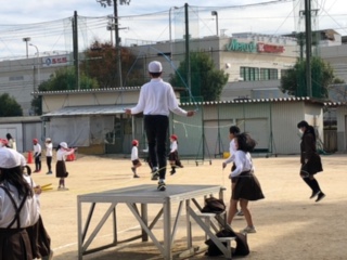 3年生、4年生が元気よくなわとびに取り組んでいます。二重跳びにもチャレンジしています。