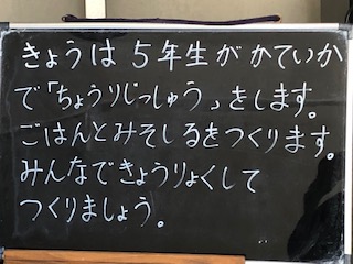 今日は5年生が調理実習をします。ごはんと味噌汁を作ります。