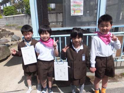 入学式から約1か月が経ったころ,2年生は,1年生を連れて学校探検に出かけました。