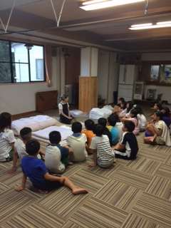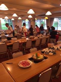係に分かれて、寝具の扱い方を指導を受けたり、夕食の準備をしたり忙しい時間を過ごしています。
