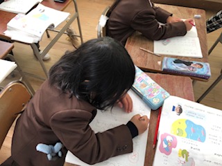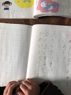 1年生も文を作る学習に取り組んでいます。ノートに三つの文を連ねた文章を書いています。