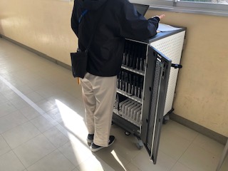 ICT支援員の方は定期的に訪問され、教職員の質問に答えたり、ICTを使った授業の時にサポートされたりしています。
