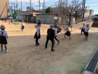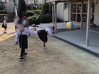 中と下の写真 ドッジボールで遊んでいる1年生です。