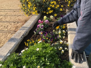 管理作業員場は、こまめに花木の手入れをして、校内の整備に努めています。(写真は20日)