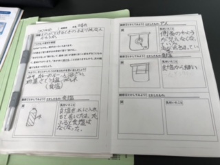 物の溶け方の実験です。右は食塩、左はあめ(飴)です。あめは明日まで置いてどうなるのかを確かめます。
