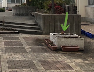 冬休みに、初夏(6月頃)に咲くゆりの球根の植えつけをしました。中庭にある2つの白いプランターに植えています。