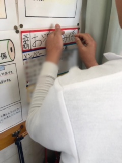 3学期の学級での係を決めて掲示物を作っています。6年生にとっては最後の係となりますね。
