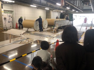 今日は運よくトラックで運搬されてきた巻紙が工場内に運び入れられるところを見ることができました。