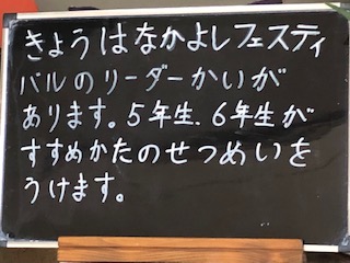 今日はなかよしフェスティバルのリーダー会をします。5年生と6年生がリーダーとしての進め方を学びます。