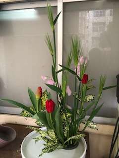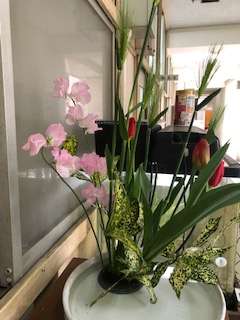 校長室の前に生涯学習のみなさんによる生け花が飾られています。いつもありがとうございます。