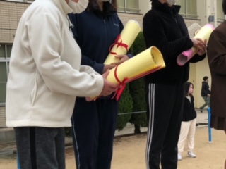 給食調理員さんへの感謝の気持ちを書いた紙が手渡されました。