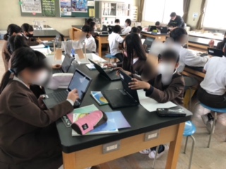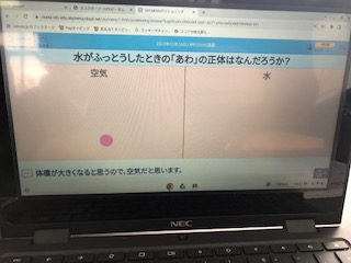 今日は実験をした時のことを思い出して、「水が沸騰した時に出るあわは何なのか」を考えて、端末に自分の意見を書きこんでいきました。
