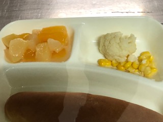 今日の給食には、カリフラワー、フルーツゼリーが出ました。コッペパンとつけるバターがでました。