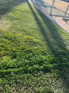 冬場でも芝生のメンテナンスをされておられます。このような地道な取り組みのおかげで芝生がきれいに保たれているのですね。心より感謝いたします。