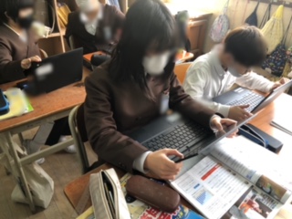 端末を使って、コンビニエンスストアのポイントカードについて調べました。