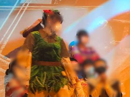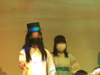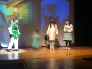ピーターパンの劇に出演しました。他校等の方はモザイク処理を強く施しています。