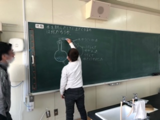 前回の実験結果をもとに自分の考えを発表しています。