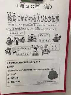 今日の給食カレンダーは給食に関わる人についての内容です。