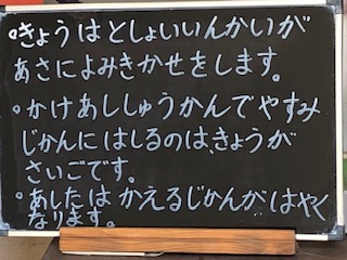 ◯明日・3日(金)は下校時間が早くなります。給食後の13時15分頃、学校をでます。
