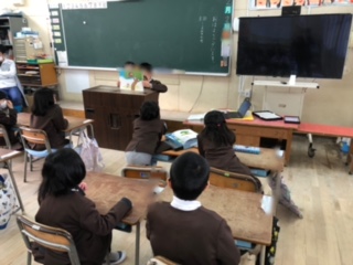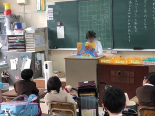 図書館委員会の子どもたちが朝、教室に行って、本の読み聞かせをしています。
