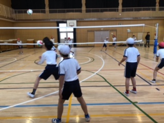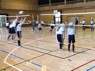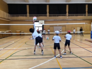 今日の体育では、バレーボールのサーバやアタックをしました。
