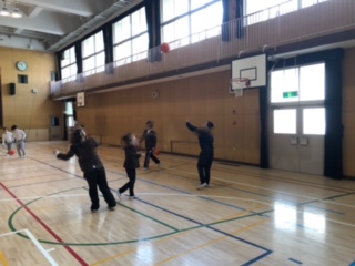 かけ足をしていない学年の子どもたちは体育館で遊んでいます。