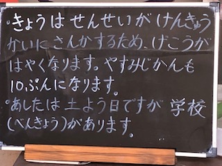 ◯今日は教員の研究会のため、下校時間が早くなります。(13時15分頃)