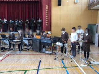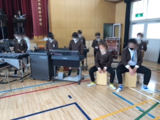 講堂で合奏している様子を撮りました。(撮影は2月1日です)