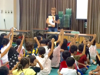 最初は「豆 豆 クイズ」です。話がとても面白くスタッフのお父さんやお母さんも「なるほどー」って感心しています。