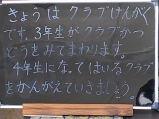 今日はクラブ見学です。3年生がそれぞれのクラブ活動を見学していきます。