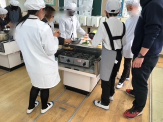 今日は6年生が調理実習をしました。お弁当を作る内容です。