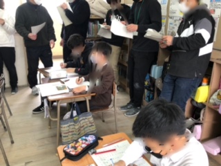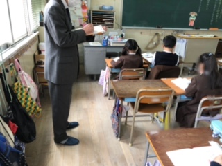 授業研究会には教育センターの指導担当者(写真上と中)、校内の教員が参加して授業を見ました