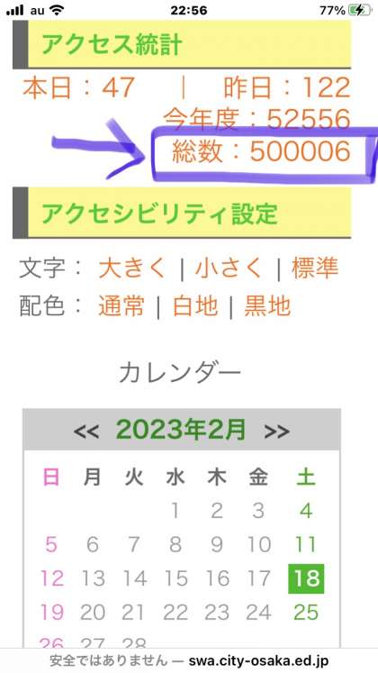 大和田小学校のホームページアクセス数の総数(開設以来の累計)が50万件を超えました。いつもご覧いただきありがとうございます。